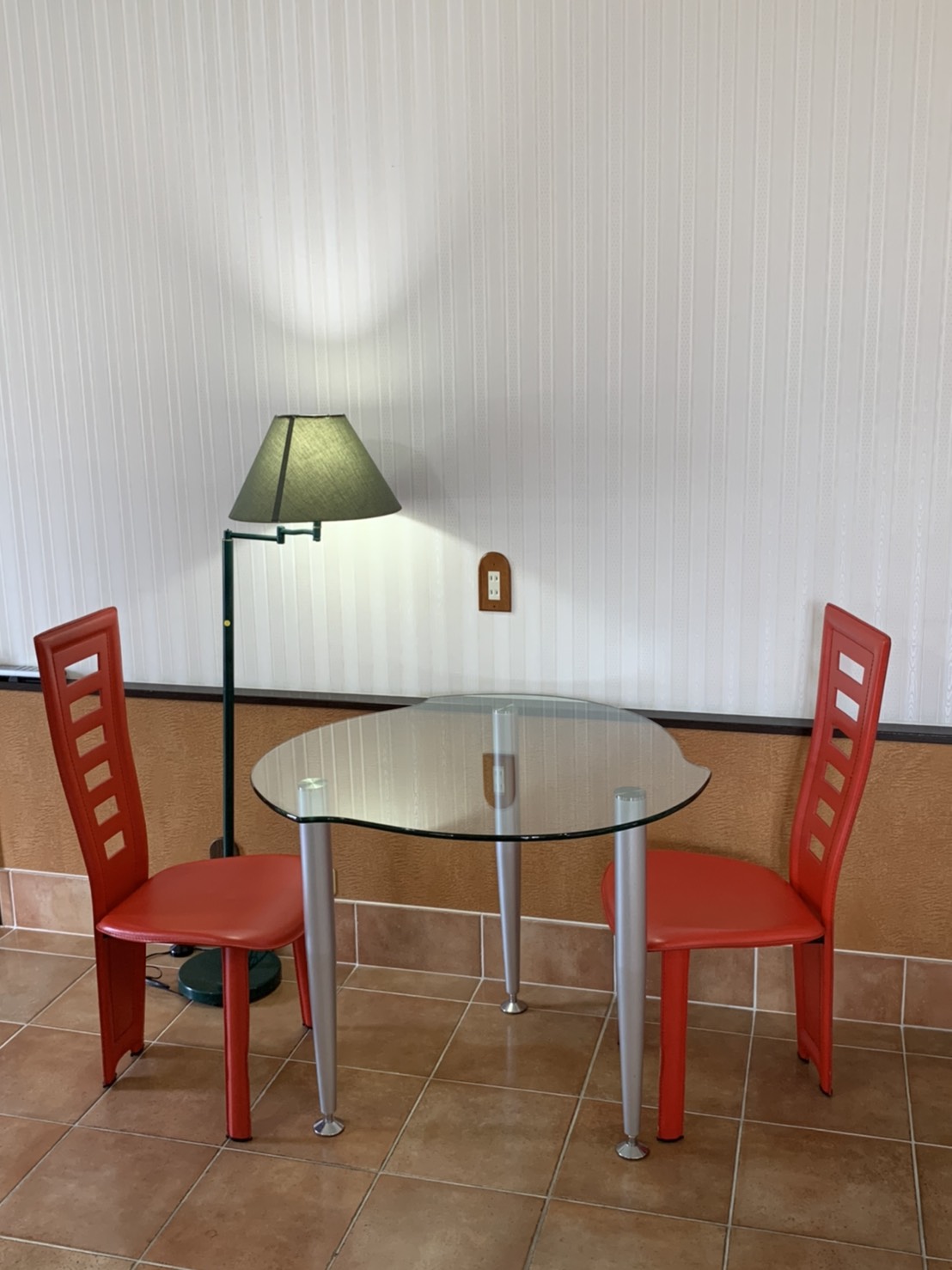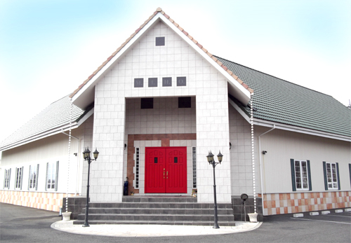 赤と白を基調にした診療室。一度に7人の患者様にお入りいただけます。